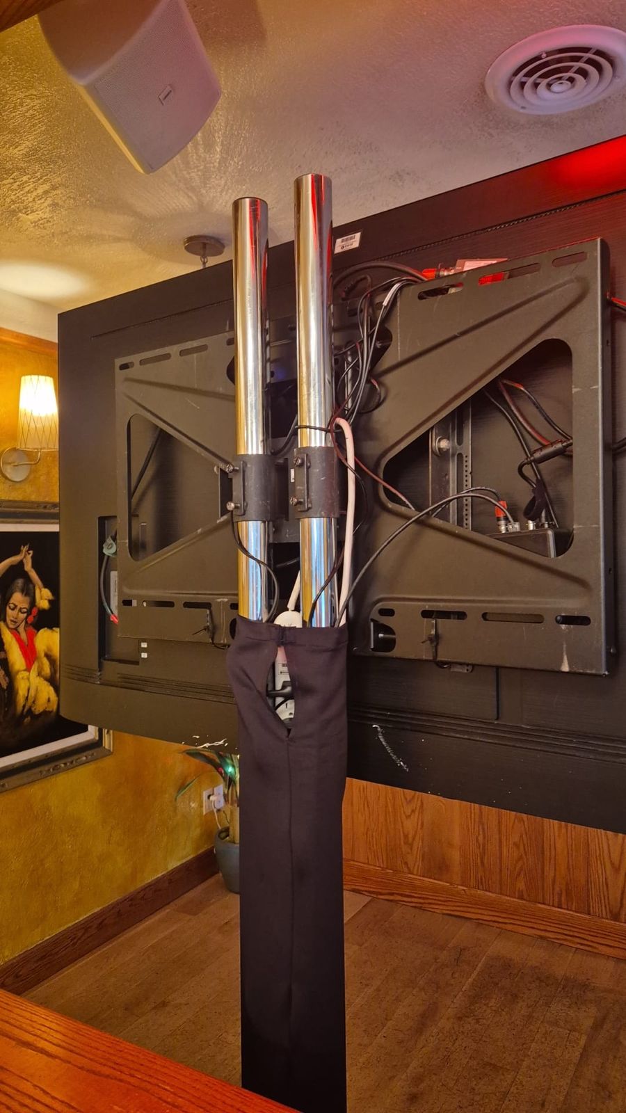 You can see here how the NUC was simply dropped at the back of the TV, making it really invisible for the client. Just internet on the RJ45 and SDI out to HDMI to the TV.